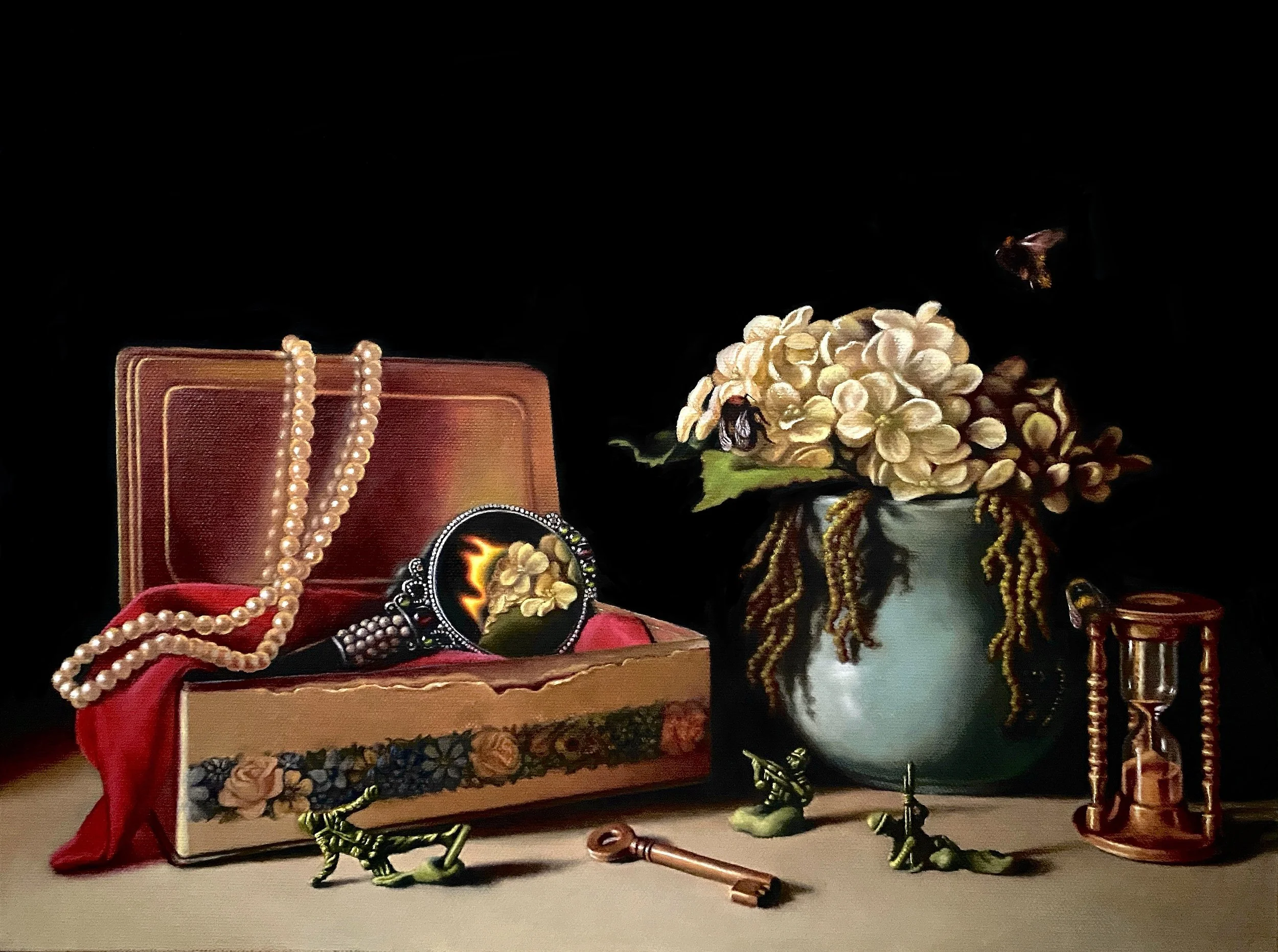 A fragmented still life that examines nostalgia, memory, and the resilience found in ruin. Scattered objects and subtle clues come together like the aftermath of something unraveled. It challenges the viewer to sift through layers of meaning and asks what are we willing to see and what happens if we don’t?
